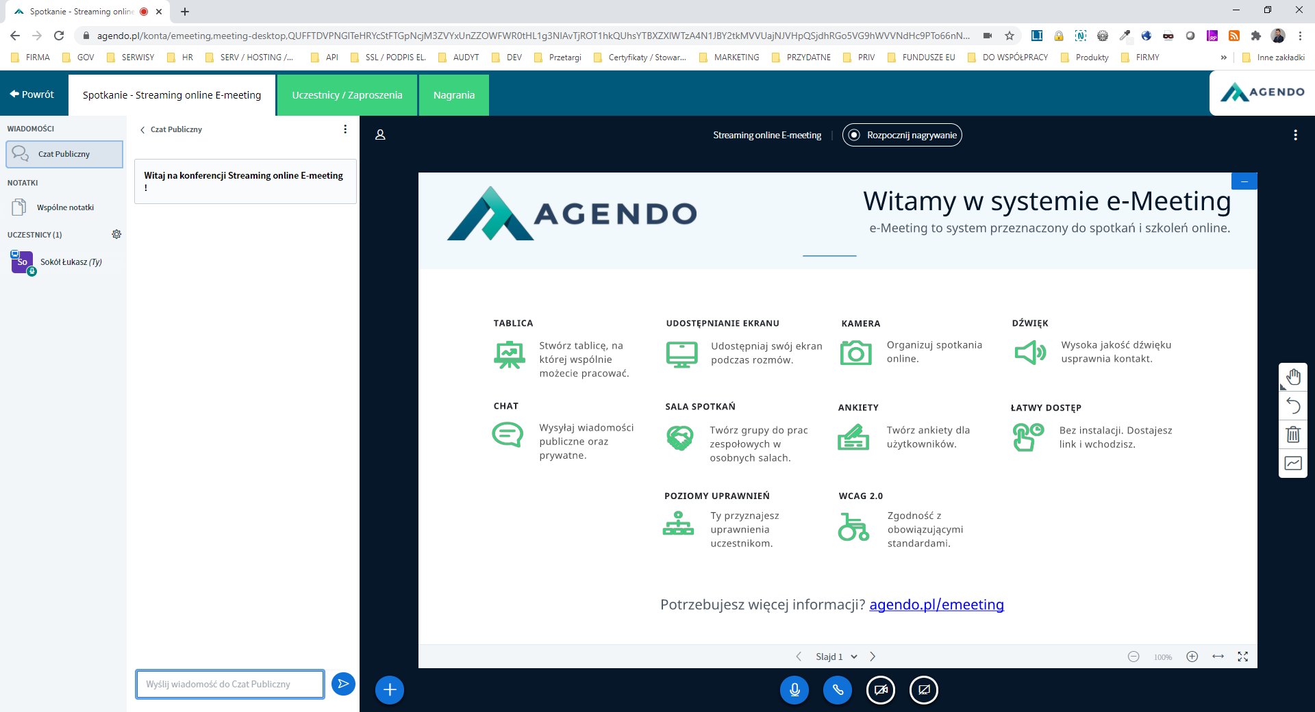 2. Utworzenie nowego spotkania w E-meeting oraz jego uruchomienie