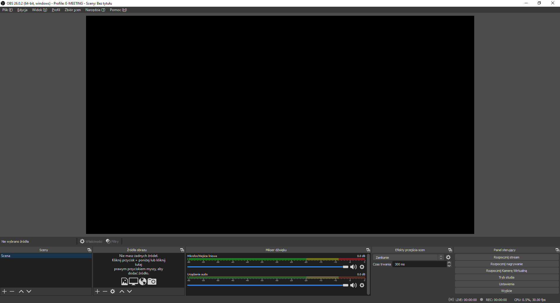 3. Uruchomienie oraz konfiguracja OBS Studio