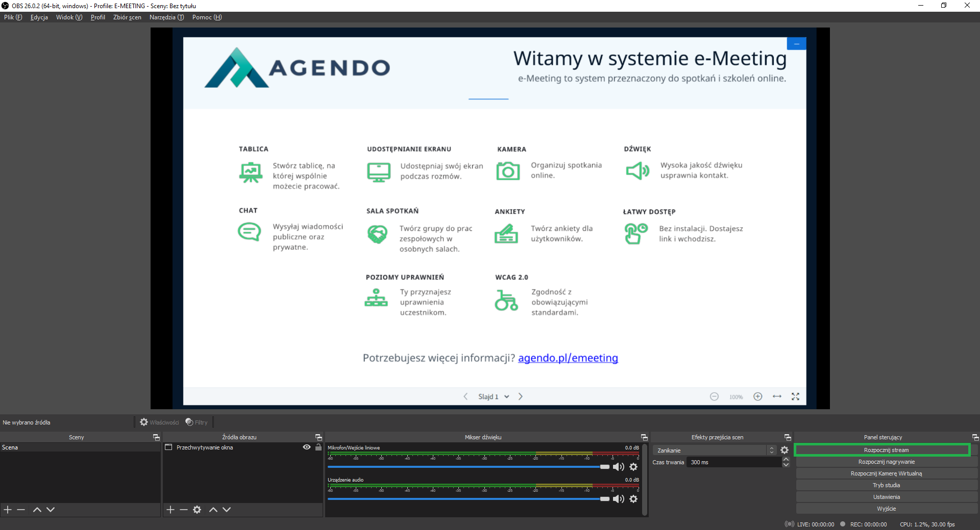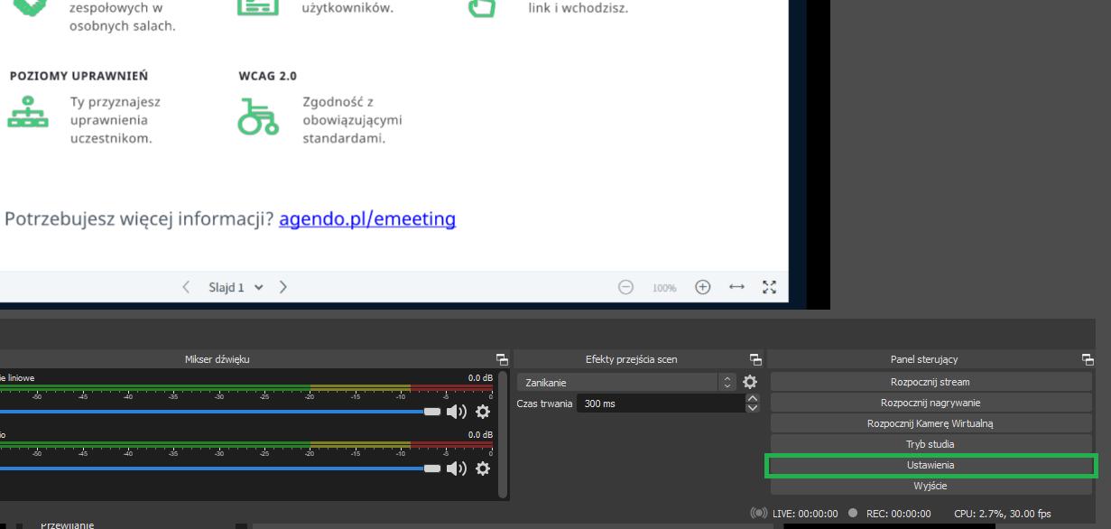 Udostępnienie streama online z platformy e-Meeting z wykorzystaniem OBS Studio (YouTube, Facebook)