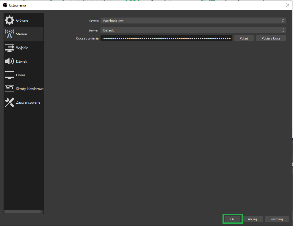 Ustaw stream w OBS Studio