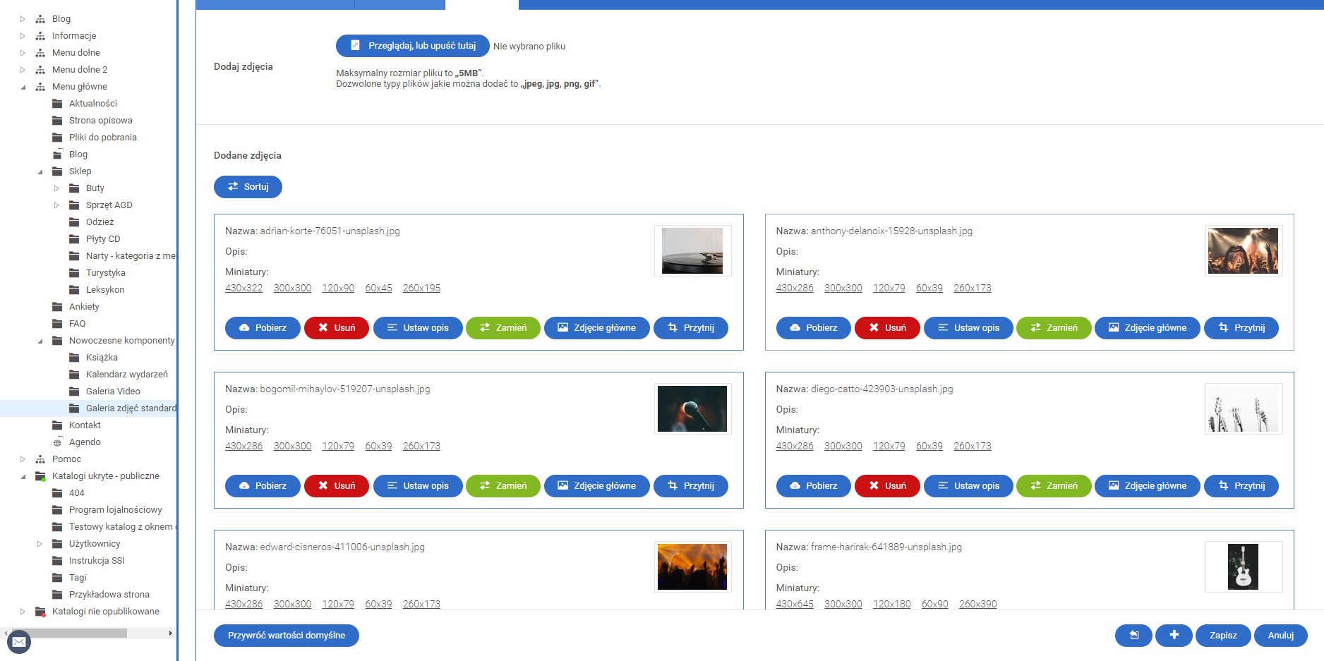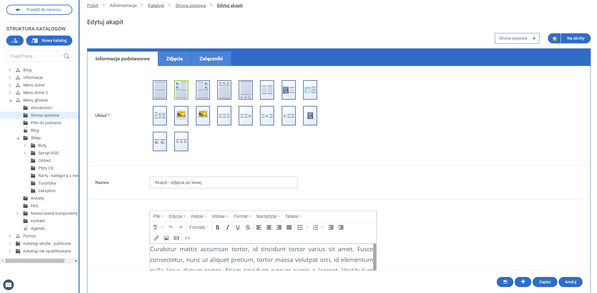 Aby ułatwić sobie edycję, można samodzielnie ustawić skróty do najważniejszych i najczęściej konfigurowanych katalogów (zakładek), dzięki czemu można do nich szybko przejść, prosto ze strony głównej panelu.
